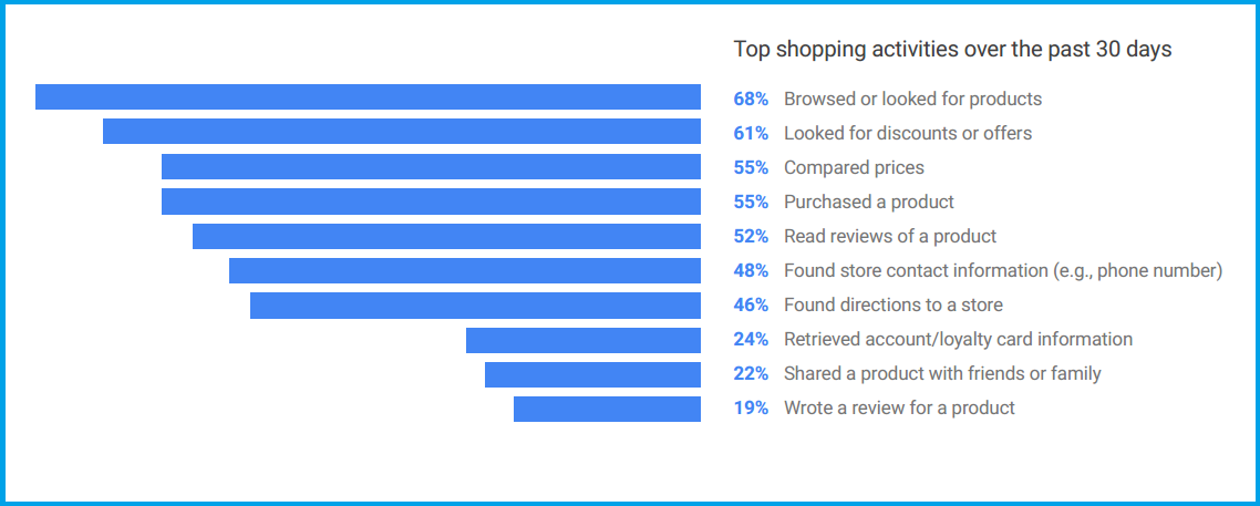 Smartphones are the go-to source to compare prices and browse or look for products even In-Store. Looking for discounts or offers is the third most important activity on Smartphones.